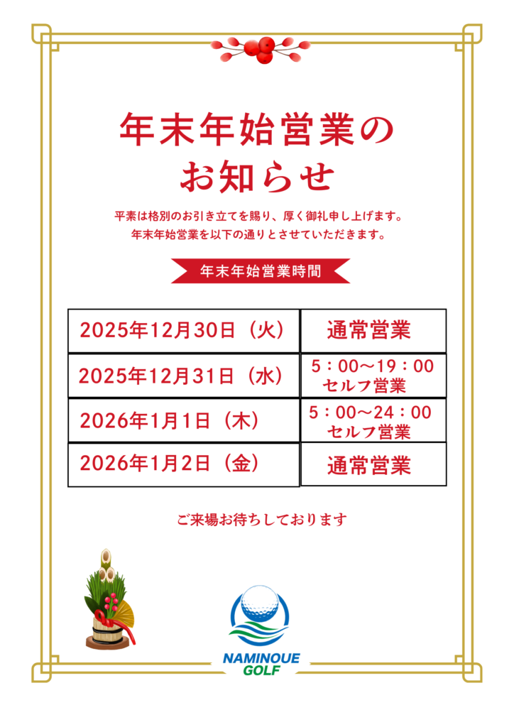 年末年始営業のお知らせ